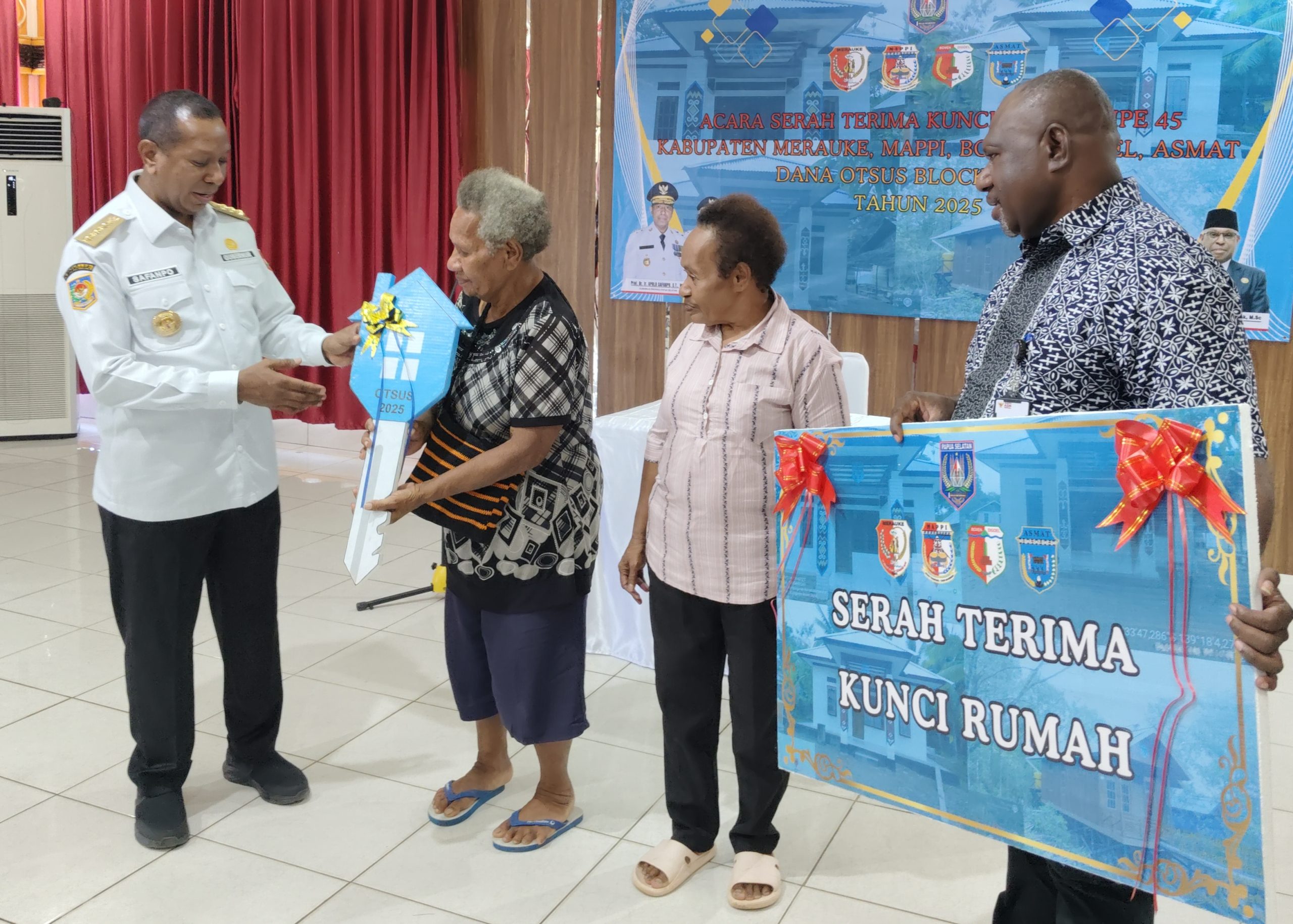 REDAKSI22.COM, MERAUKE – Gubernur Papua Selatan i, Apolo Safanpo menyerahkan 64 unit perumahan rakyat layak huni tipe 45 bantuan pemerintah melalui Dana Otonomi Khusus (Otsus) Block Grand tahun 2025 kepada warga masyarakat Orang Asli Papua (OAP) di empat kabupaten (Merauke, Mappi, Asmat dan Boven Digoel).